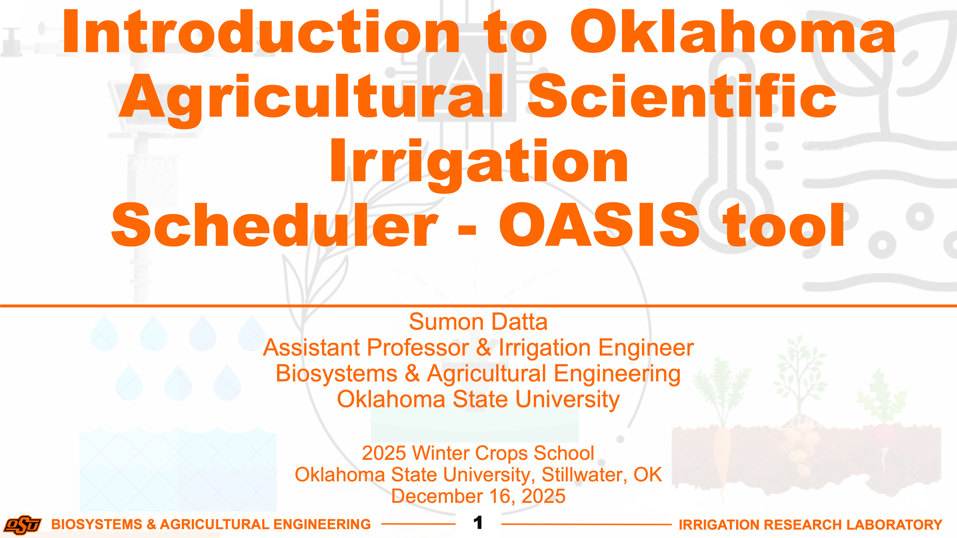 Introduction to Oklahoma Agricultural Scientific Irrigation Scheduler - OASIS tool - Sumon Datta, Ph.D.