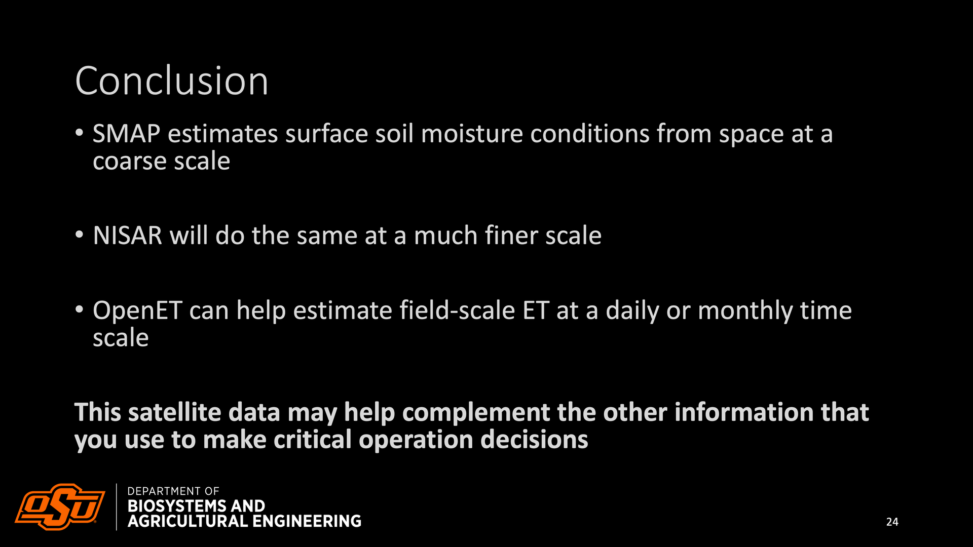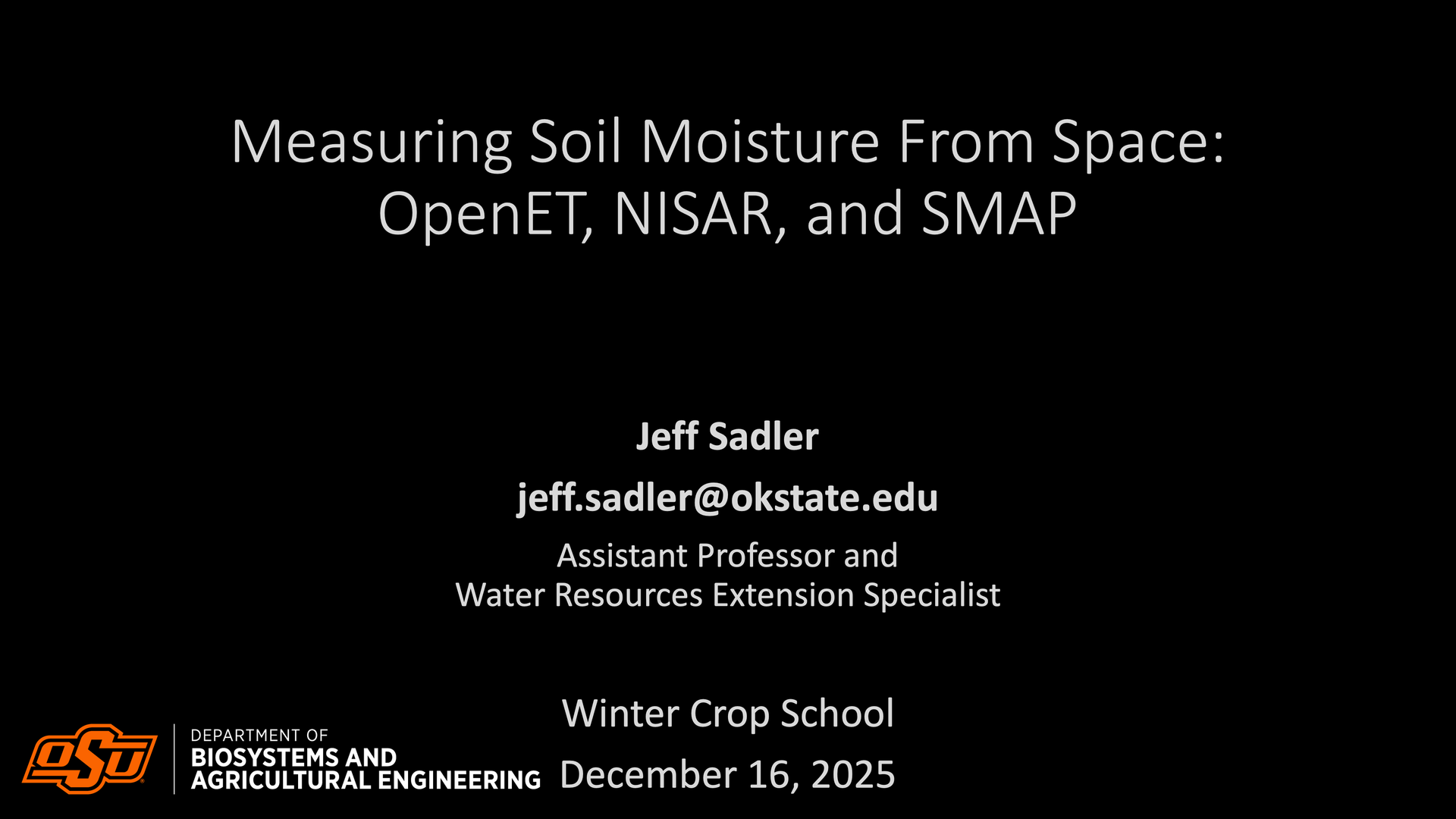 Measuring Soil Moisture From Space: OpenET, NISAR, and SMAP - Jeff Sadler, Ph.D.