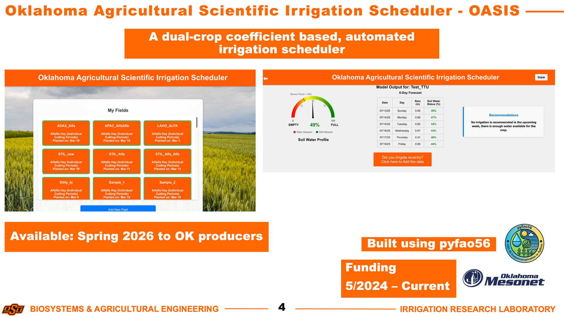 “Introduction to Oklahoma Agricultural Scientific Irrigation Scheduler - OASIS tool”