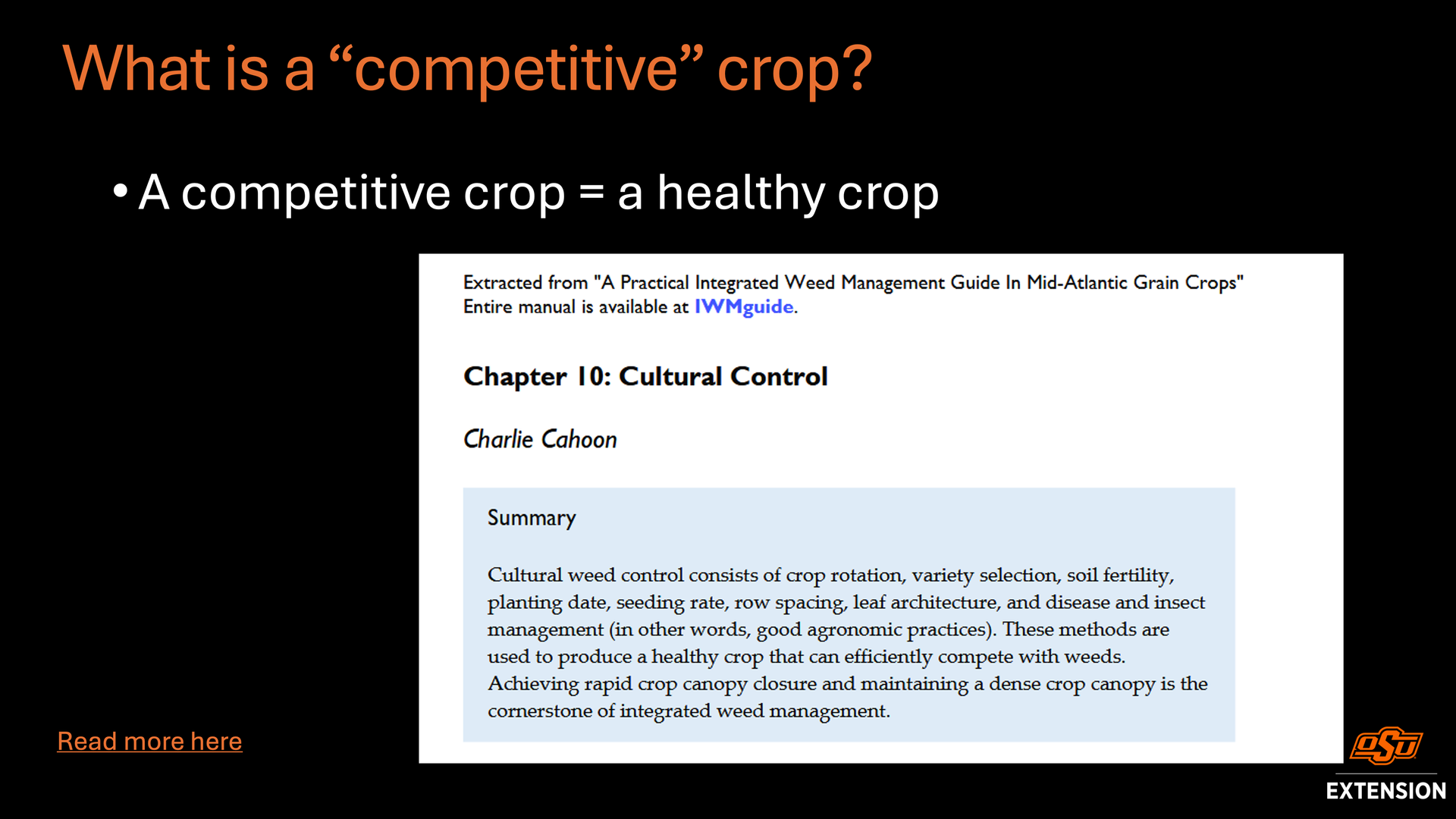 Cultural Weed Control, Variety Selection and Planting Date - Liberty B. Galvin, PhD